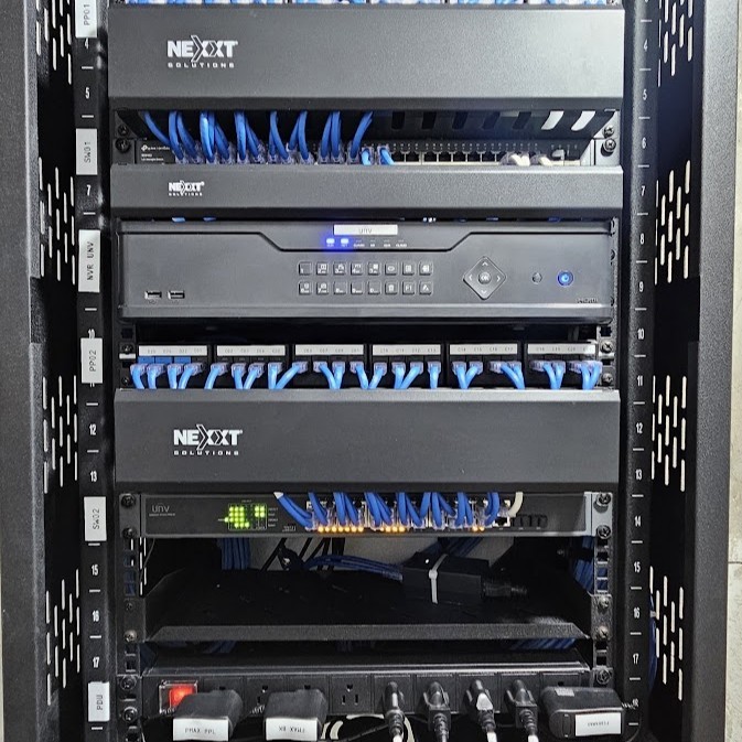 Implementamos racks y gabinetes con organización profesional.